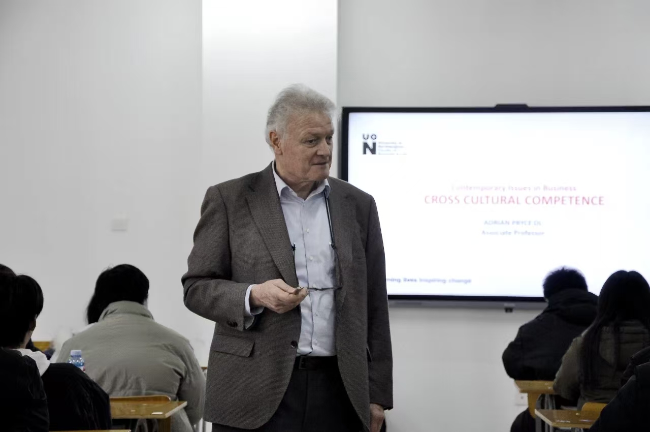 En la conferencia, el profesor Adrian Price Howard tomó la palabra «future» como punto de partida, la desglosó hábilmente en seis dimensiones como Fast (Rápido) y Urban (Urbano), y analizó de manera clara y accesible las diferencias culturales entre Oriente y Occidente las habilidades de comunicación intercultural, combinando ejemplos cotidianos, teorías culturales y comparaciones de datos chinos y británicos. Por su parte, la directora Yu Lijuan se centró en las características de aprendizaje y las necesidades de desarrollo de los estudiantes chinos y extranjeros, presentó detalladamente el sistema de apoyo a los estudiantes internacionales de la Universidad de Northampton y brindó a los estudiantes presentes una valiosa referencia para el aprendizaje internacionalizado.
