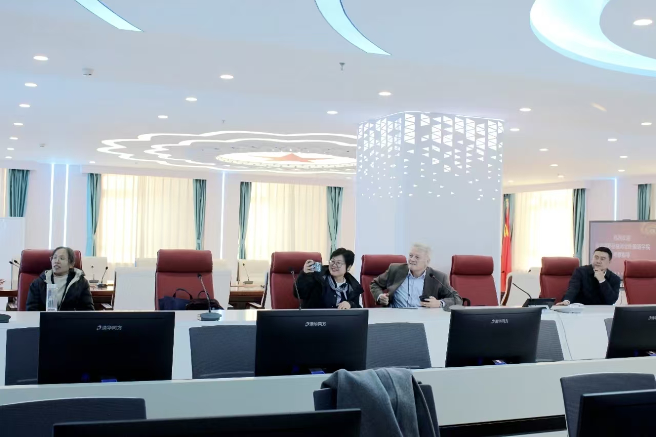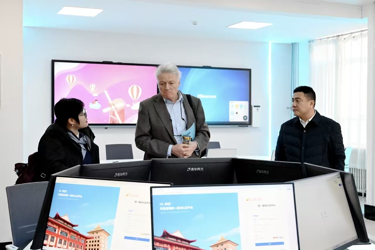 Después de la conferencia, acompañados por el vicerrector adjunto Chen Wei y la subdirectora Wang Yunli, la delegación visitó in situ instalaciones docentes y de investigación de la Universidad de Estudios Internacionales de Hebei, como el Museo de la Universidad y el Centro de Big Data. Frente al modelo de arena de la vista panorámica del campus, el profesor Adrian Price Howard expresó un sincero elogio por la planificación científica del campus y la profunda riqueza cultural de la institución. En el Centro de Big Data, la delegación observó atentamente escenas como el monitoreo en tiempo real de datos del campus inteligente y la demostración del sistema de enseñanza inteligente, brindó una alta evaluación a las prácticas innovadoras de la universidad en potenciar la educación y la enseñanza mediante la tecnología, y consideró que las experiencias relevantes son dignas de ser aprendidas y promovidas.
